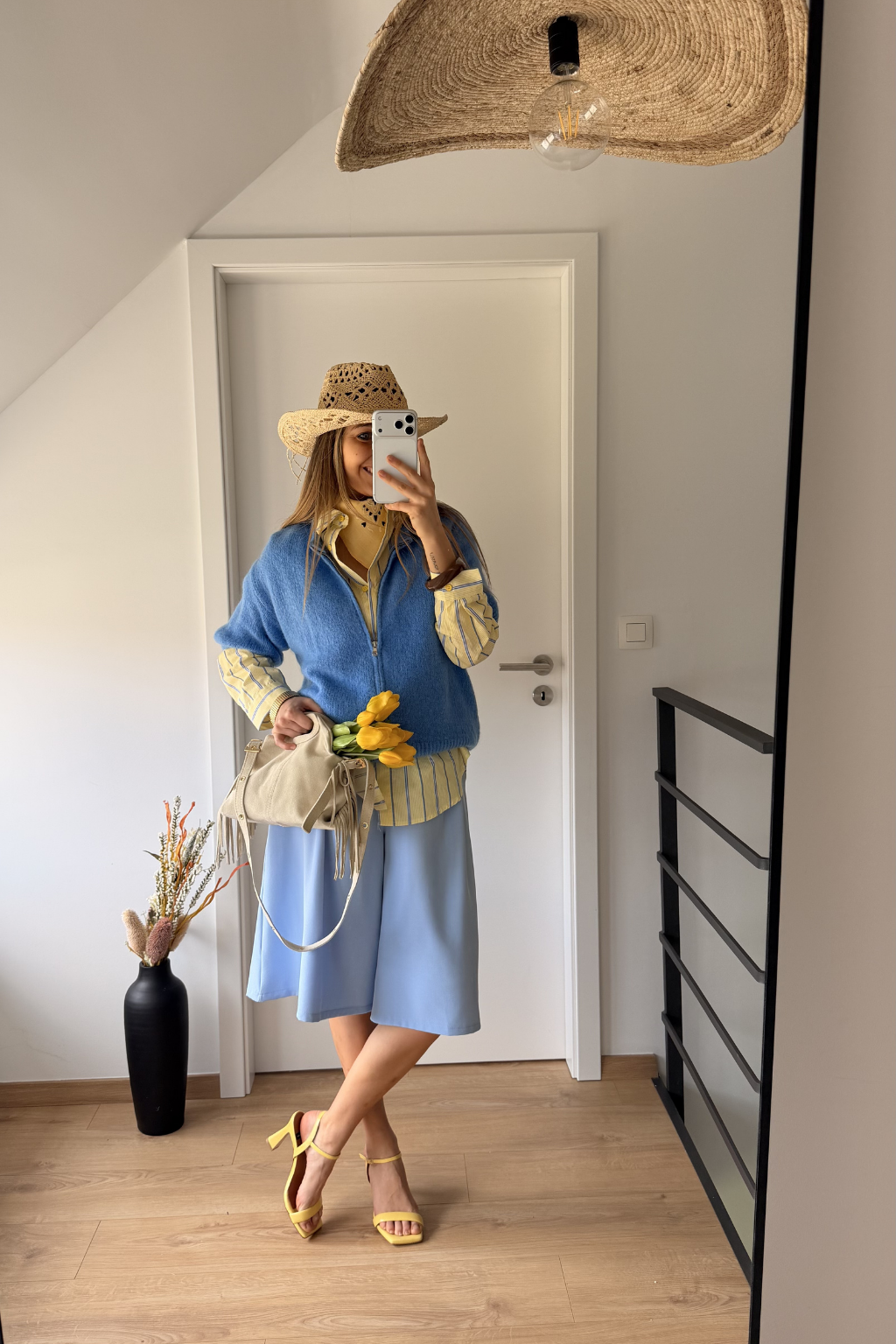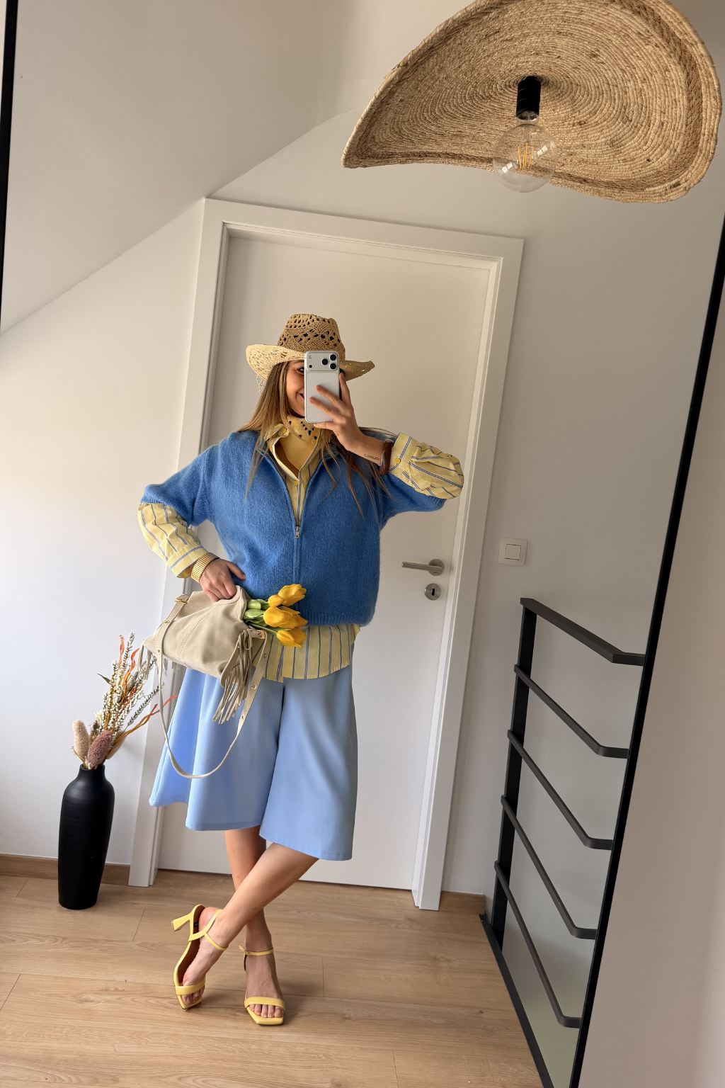Sa jolie couleur bleu clair apporte une touche douce et lumineuse à votre tenue. Doté de poches sur les côtés et d’une fermeture avec bouton à l’avant, il est aussi pratique que stylé.