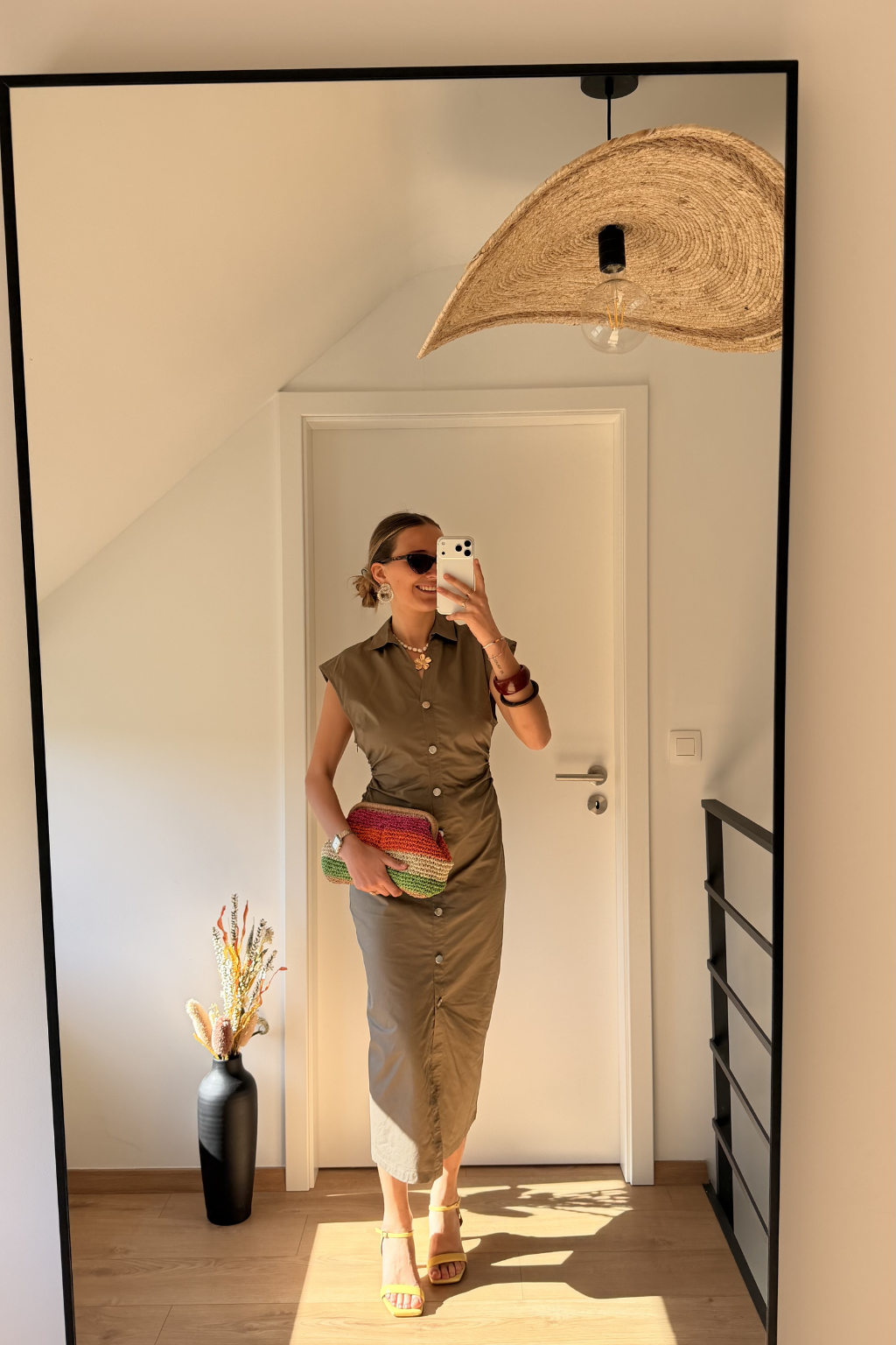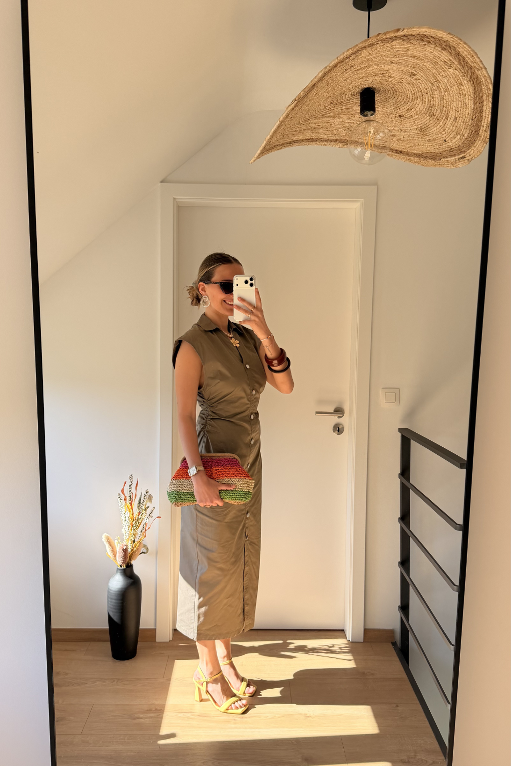 Une robe midi élégante et structurée, parfaite pour un look chic et moderne. Sa coupe près du corps, ses boutons sur le devant et sa taille subtilement marquée en font une pièce féminine et facile à porter en journée comme en soirée.